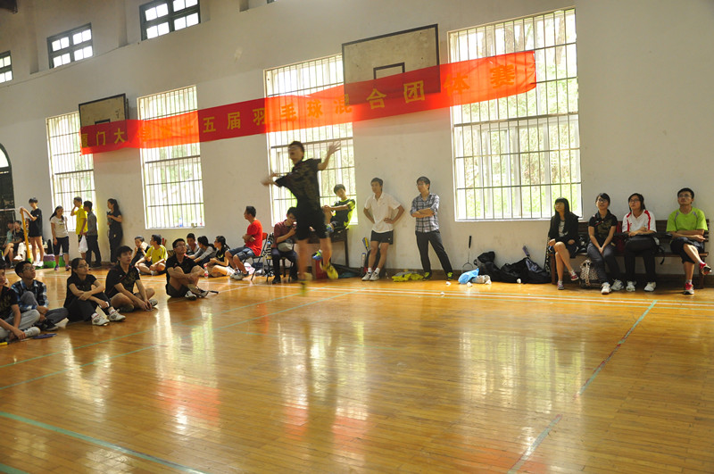 这是厦门大学第十五届羽毛球混合团体赛的比赛现场,数学科学学院的第一场比赛拉开帷幕。