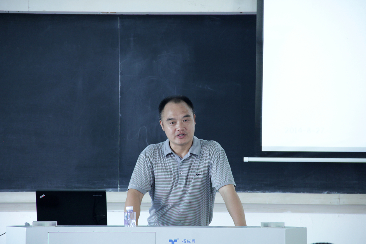 2014年8月26日上午9:00,2014级本科新生入学教育系列(校史校情教育)在学生公寓教学楼205举行,由党委副书记郑诚明主讲。