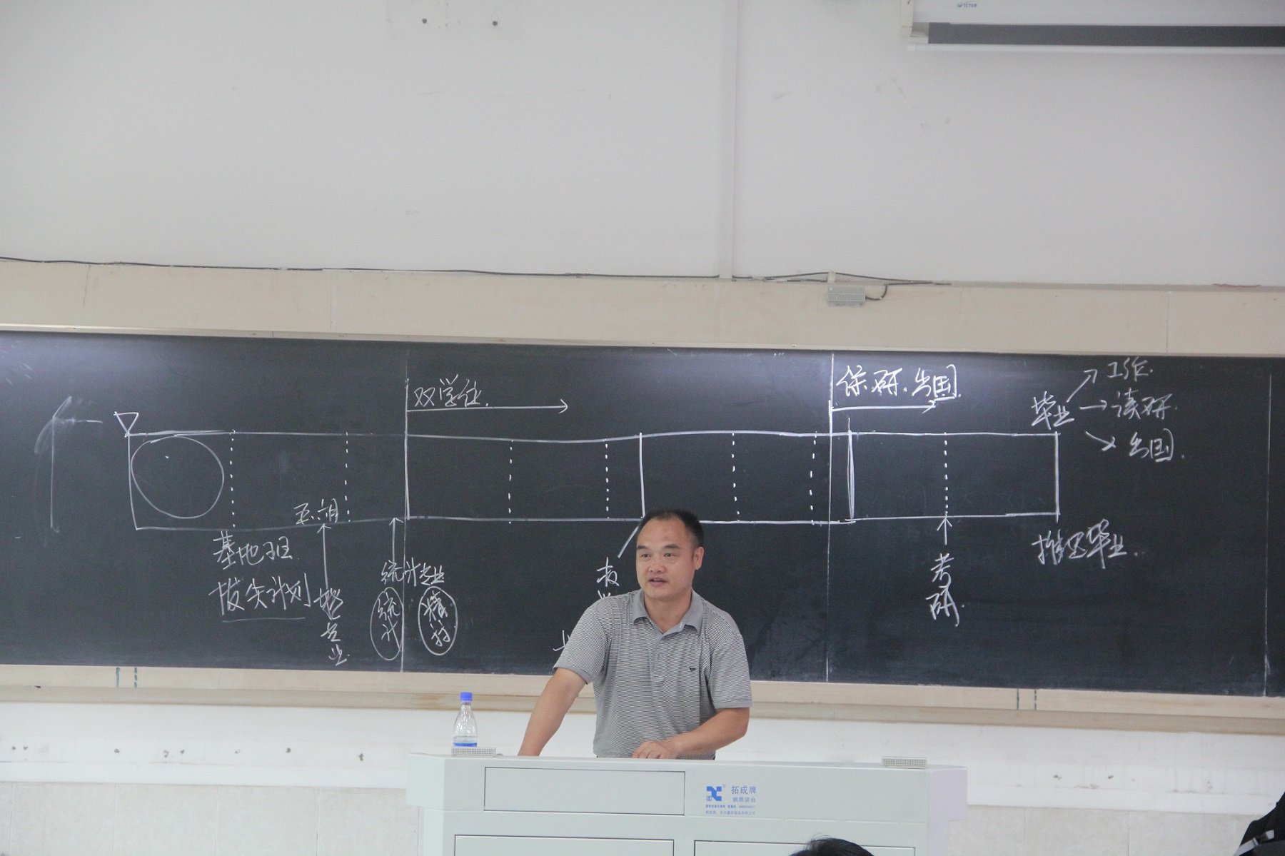 接下来钱建国副院长在黑板上画了数院学生本科时间轴,将4年来学生的大事记化为轴上一点,生动明了告诉家长大学的学习规划与安排,尤其是刚开始要注重中学与大学的衔接,及时调整孩子的心态,以免没适应过来对以后学习造成影响。“中学老师可能每一点都非常详细,但大学更看重自学能力。”鼓励不畏艰难,发现数学中的乐趣。