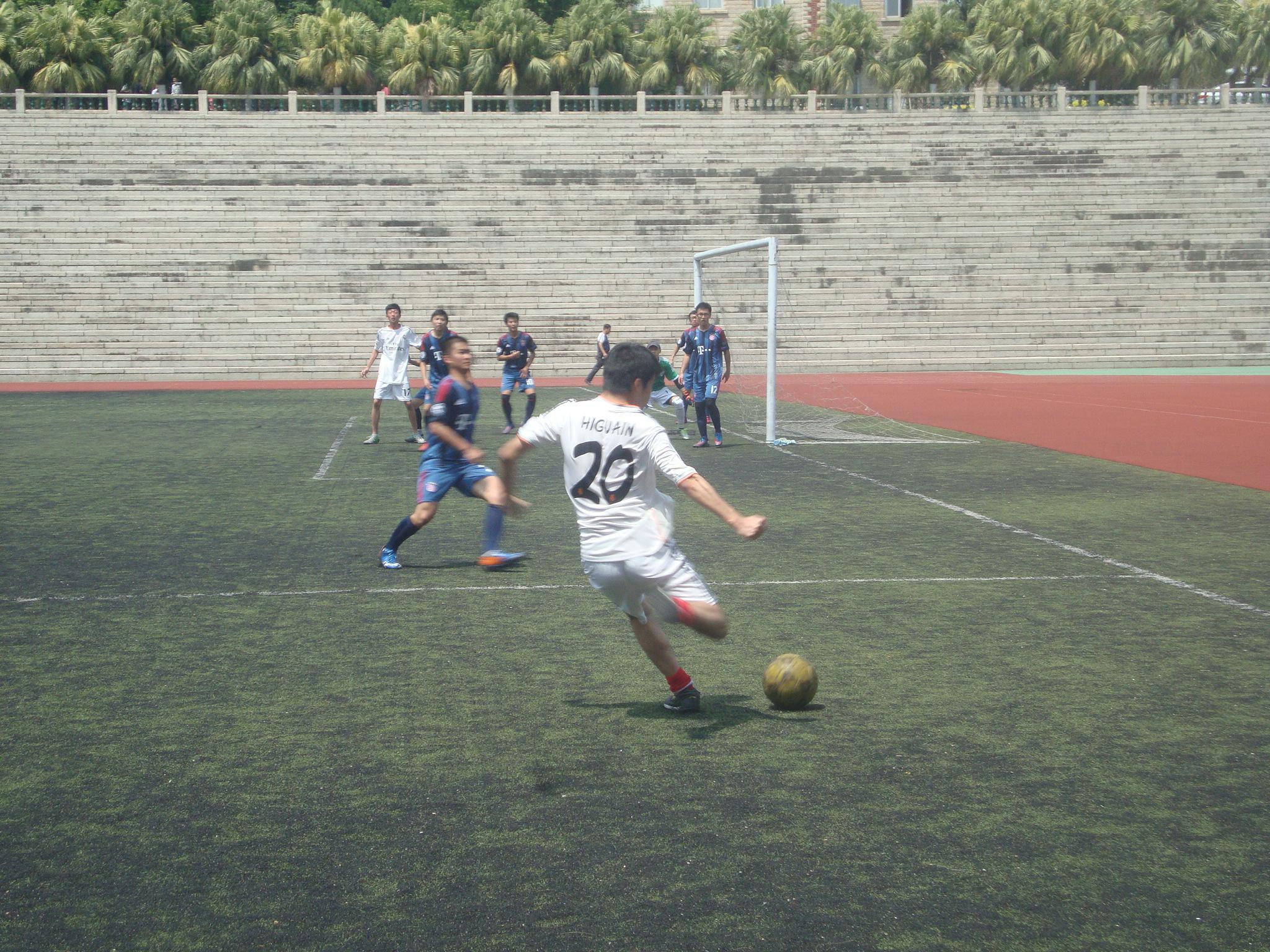 比赛开始不久,中卫洪昱旻在禁区前沿犯规,绊倒了对方,就在他跟对方球员道歉之时,对手快速发出了任意球,抓住洪昱旻身后空当,打了数院一个措施不及,对方前锋在禁区右侧接球,直接起脚射门,门将来不及做出反应,0:1,数院落后。