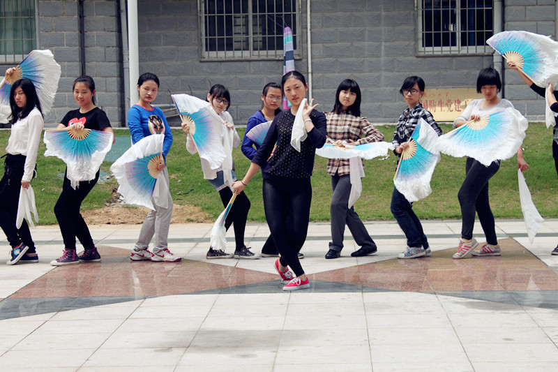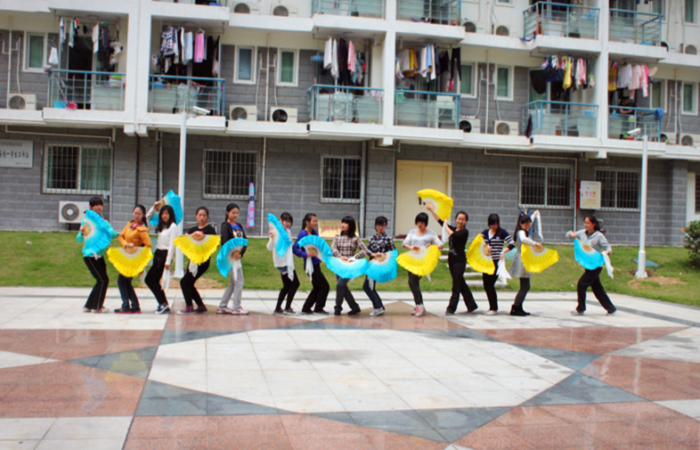 中午十二点半,随着悦耳的音乐声,排练准时开始。12级的郑敏同学为该扇子舞的领舞。舞蹈一开始,她那优雅的舞姿、柔软的身段、灵活的动作和到位的表情立马吸引了全场观众的目光。其他同学也不示弱,她们显然都经过了刻苦的训练,动作整齐却不呆板,并随着节拍关上或打开扇子,十分具有韵律感。