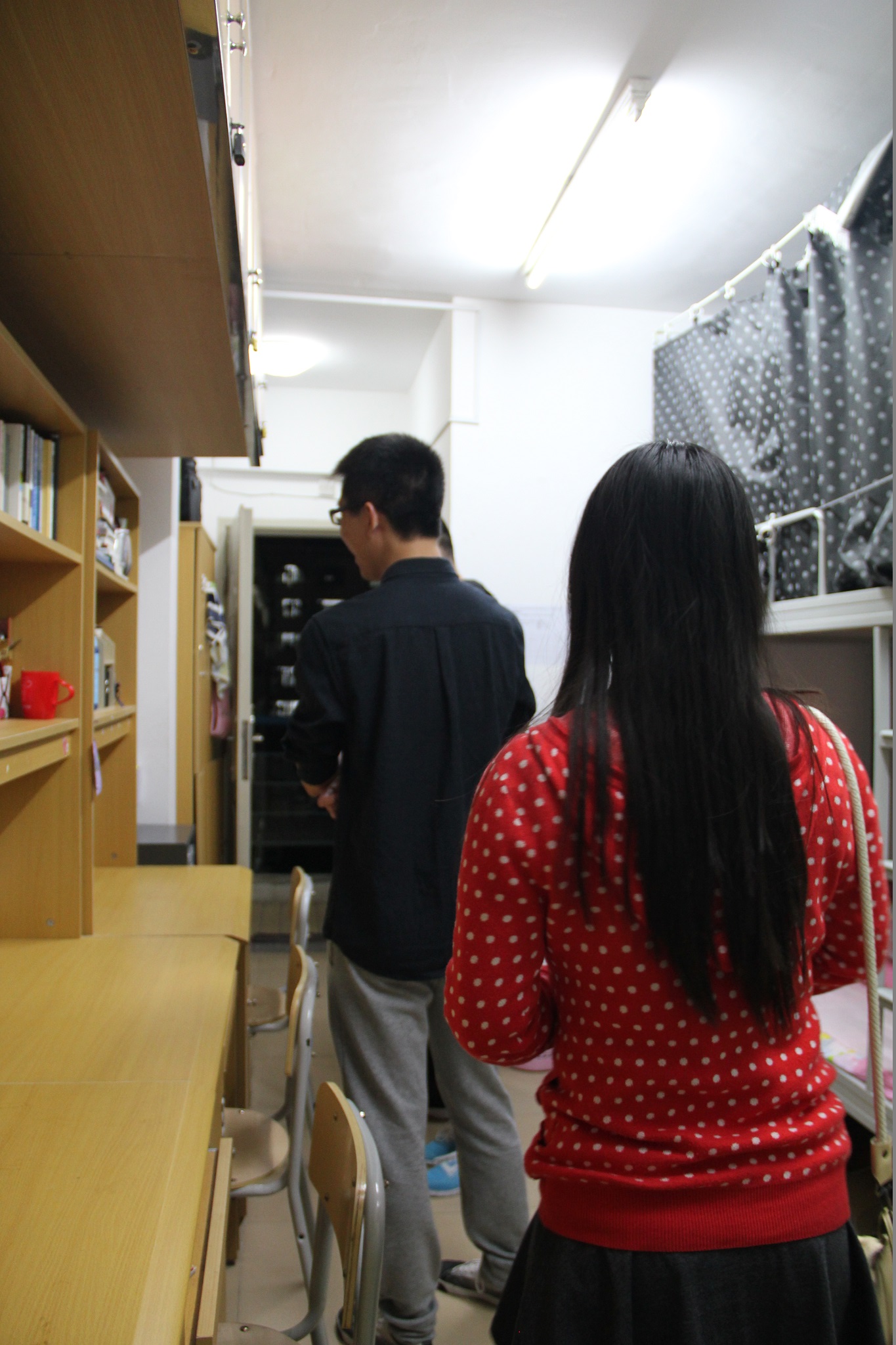 督导部于晚上7点开始检查,逐个走访宿舍。被抽到的宿舍都窗明几净,物品摆放整齐,合理利用空间,有的宿舍还有花草字画等装饰,且都没有大功率电器等安全隐患。
