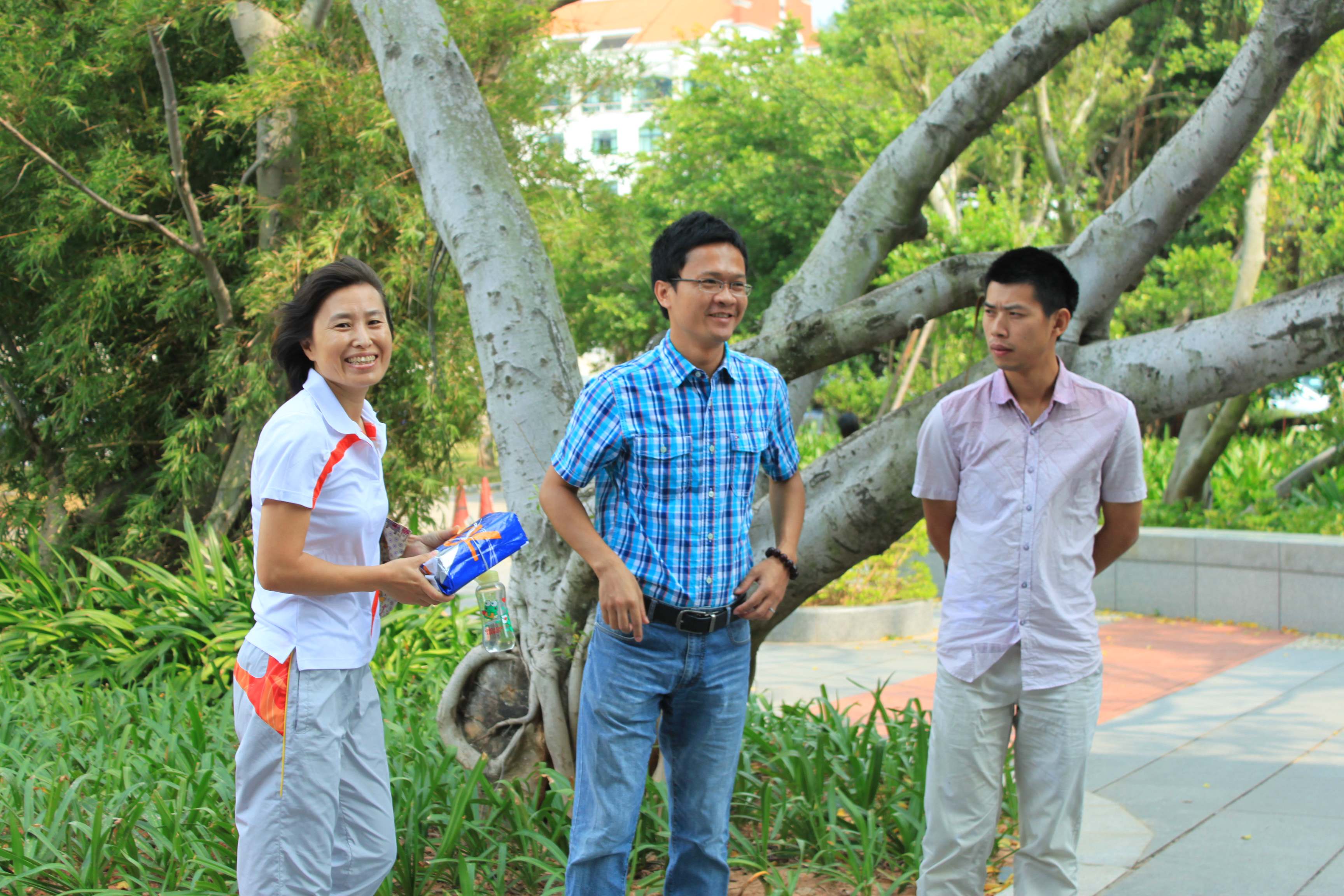 一个小时之后,为使同学们的动作整齐划一,赵老师用手打拍并让同学们统一喊口号,该方法取得了明显的效果,恩明楼前口号阵阵,同学们的动作也逐步整齐划一。