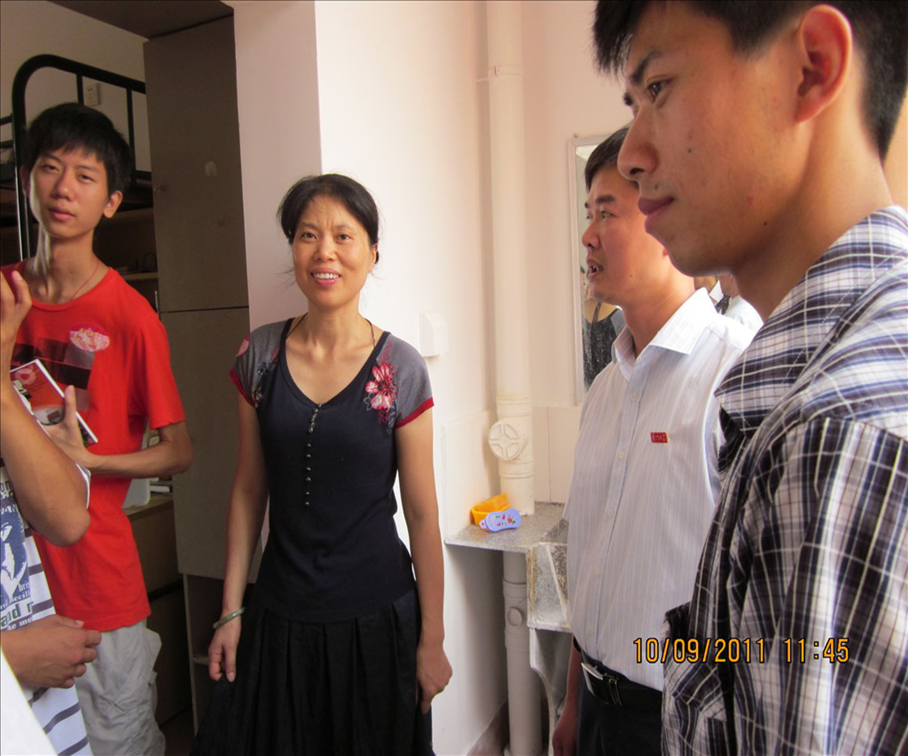 尽管酷暑难当,学院党委书记张明智、副书记郑诚明仍在辅导员陈向柳、石义凯等的陪同下,走访漳州校区学生宿舍,亲切慰问刚刚入学的2011级新同学。学院领导非常关心11级学子的家庭情况,关注贫困学生,带领他们办理“绿色通道”并通知相关事宜,鼓励他们努力学习专业知识,培养良好的工作和人际交流能力,发展成为国家和社会需要的栋梁之材。