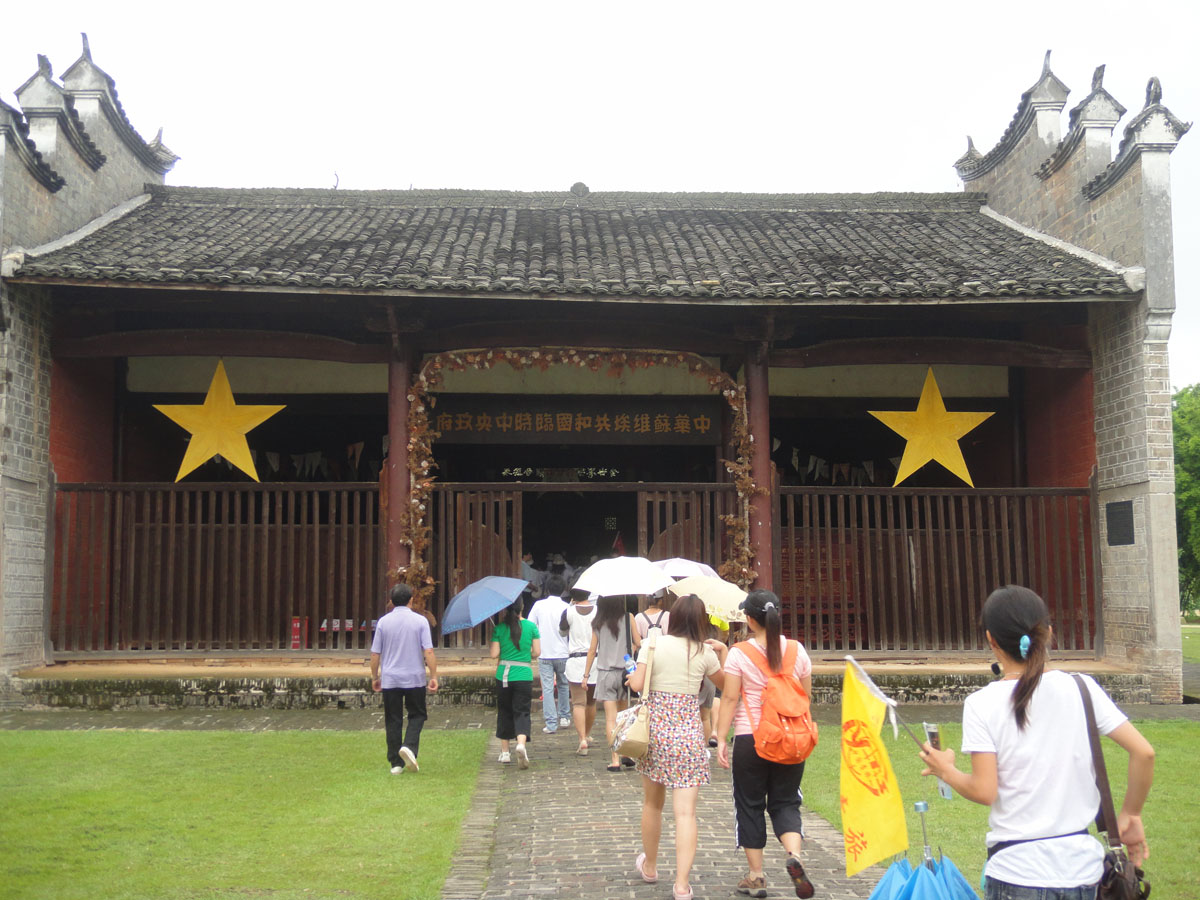 7月17日上午,实践队奔赴江西瑞金,寻访中华苏维埃共和国临时中央政府旧址(叶坪)及沙州坝。黄泥墙,乌瓦屋,都充满了历史的印记——80年前毛泽东、周恩来、朱德等来自全国各地的610名代表,举行具有深远历史意义的中华苏维埃工农兵第一次全国代表大会。每一位工作人员,都身着灰土布、红领章,使人不由自主地追忆那峥嵘岁月。工作人员的现场表演,精彩重现了第一次全国代表大会时的场景,令队员们印象深刻。沙洲坝上那一口红井更是时刻提醒着人们“吃水不忘挖井人,时刻想念毛主席”。