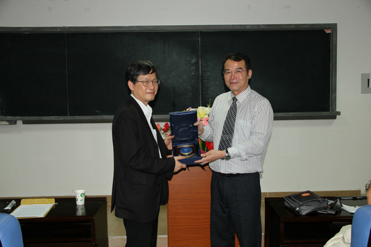 副院长邱春晖教授简要介绍了莫毅明教授的成就,副院长程立新教授向莫毅明教授授予厦门大学南强讲座纪念牌。