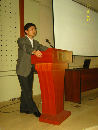 紧接着,张明智书记从三个方面发表了讲话。首先,书记总结了本次校庆期间,数学科学学院为丰富校庆活动、构建学术氛围做出的贡献,包括邀请菲尔茨奖获得者Zelmanzo莅临厦大发表演讲、邀请陈景润夫人由昆女士重返厦大、邀请林群院士为同学们举办讲座。其次,书记回顾了近两年厦门大学数学科学学院的发展成果,并且展望了学院光辉的未来。例如学院即将建立概率统计系,计算数学申请国家二级重点学科,组建精算研究中心。最后,书记表扬了同学们在2010年度——2011年度取得的优异成绩,并希望同学们走出宿舍,按时上课,再接再厉,却得更好的成绩。