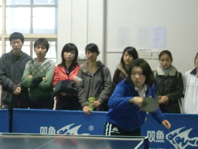 接下来的男双比赛由在八强赛和四强赛中决胜对手的10级陈汉和江全荣上场。一向以沉着冷静著称的组合顶住大比分落后的巨大压力,为我院扳回1分。随后出场的10级张新栋,面对强大的对手镇定自若,气势和风度具备,又为数院夺回一分的同时,将精彩奉献给观众。最后上场的女单选手10级陈元,面对落后的比分,从容不迫,顽强拼搏,为此次乒乓球赛划下圆满的句号。