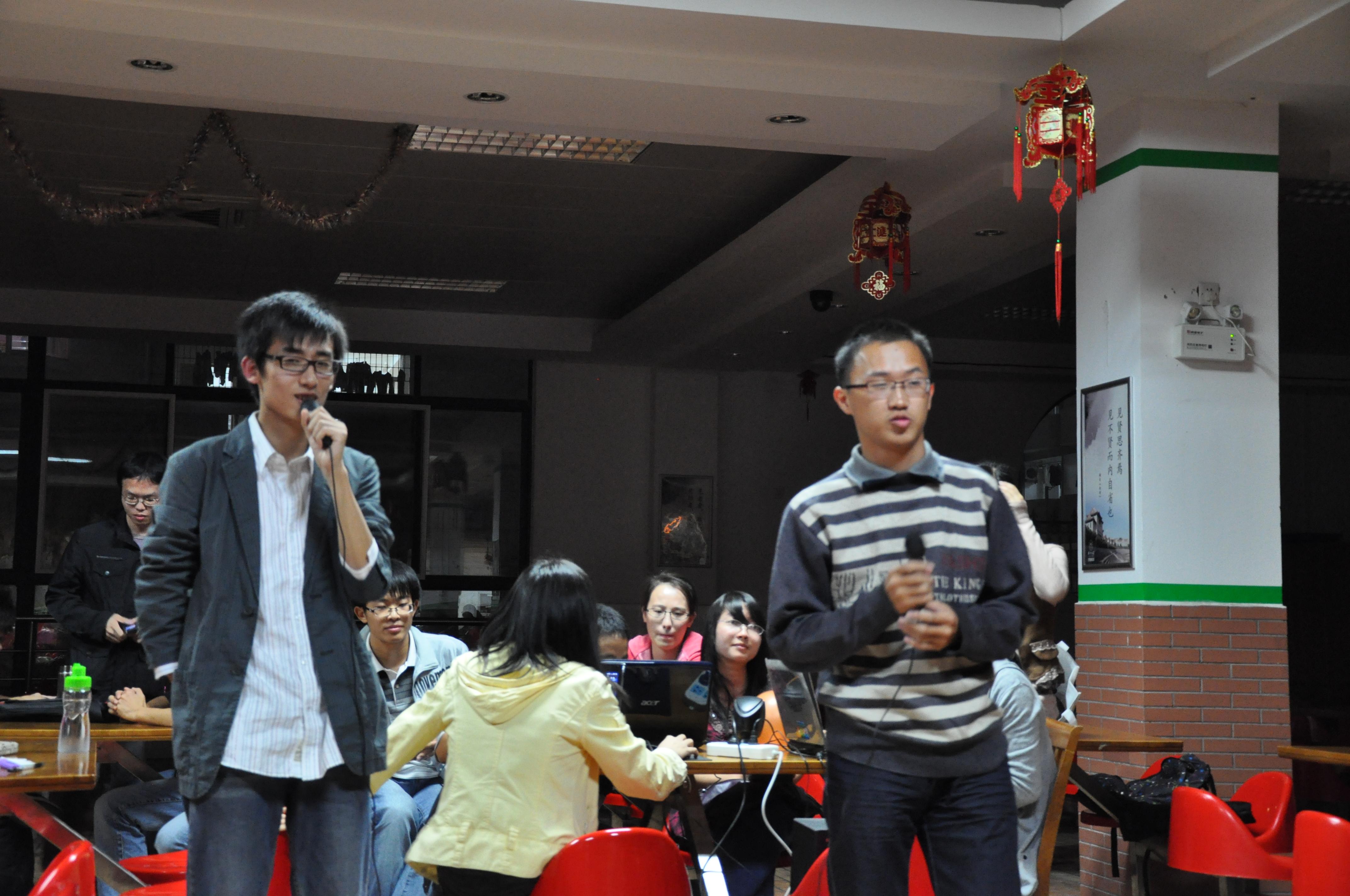 一年一度的光棍节又如约而至,为了让同学们在这一天里觉得孤独,数科院研究生会为大家举办一个山寨版的非诚勿扰。11月11日晚上7:30 ,“非诚勿扰”在同学们的期待中开始,王友智饰孟非当主持人,苏兴泉饰男评论员乐嘉,陈艺宣当女评论员。男嘉宾有江政雲、张瑶函、陈波等六位同学,女嘉宾有程潘红、徐凡惠、涂淑珍等同学。