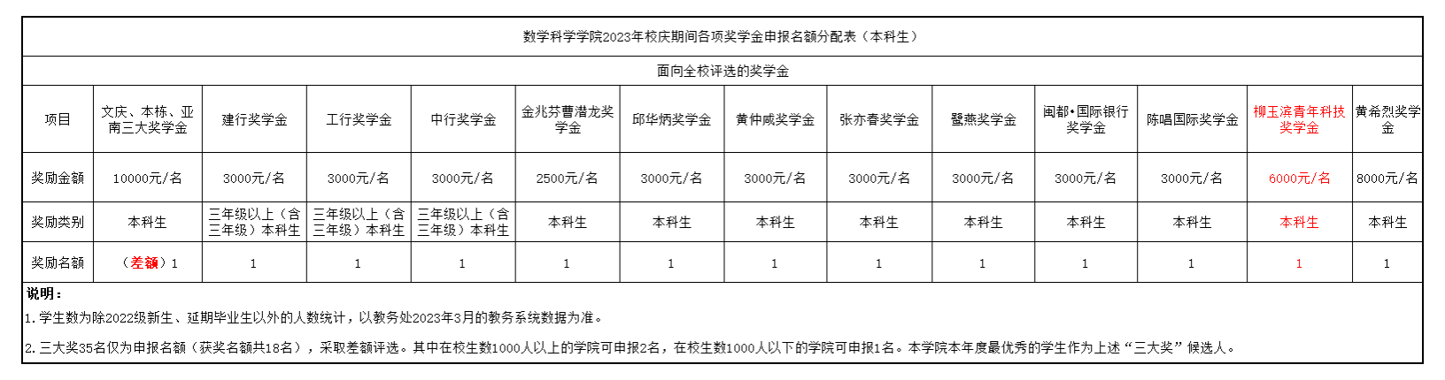 2023年校庆期间将评选颁发文庆奖学金本栋奖学金亚南奖学金等多项校级奖学金,现将各项奖学金评奖工作的有关事项通知如下:
