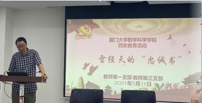 5月11日,数学科学学院教师第一党支部和第三党支部在天元中心会议室以“学习雷经天、忠于革命事业”为主题围绕新民主主义革命时期历史开展专题研讨,这也是支部开展党史学习教育系列活动之一。
