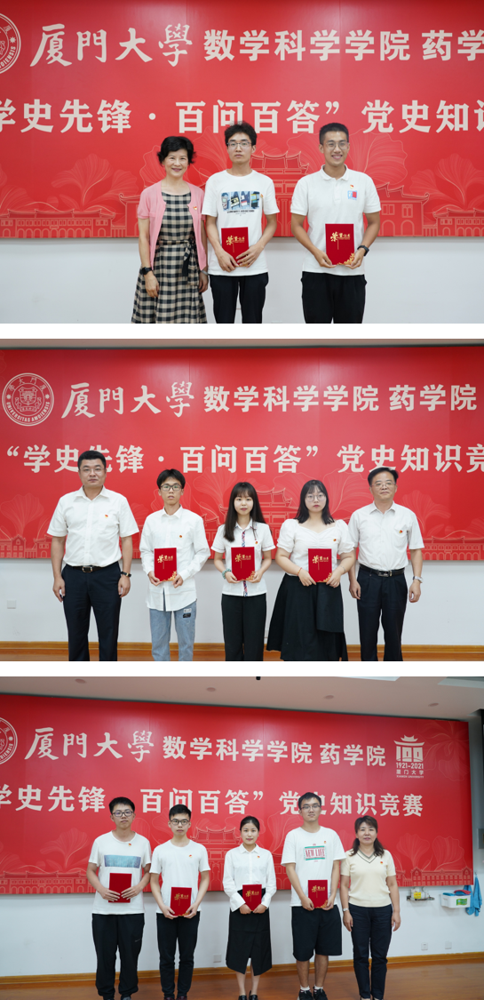 本次数学科学学院、药学院联合举办的“学史先锋·百问百答”党史知识竞赛是落实跨校区学院共建合作的新尝试,也是学院开展“数院先锋·学史践悟”党史学习教育的重要一环。通过本次竞赛,参赛选手在答题中增强了学习党史的主动性和积极性、激发了奋进动力,在场党员也更加坚定了学党史、感党恩、跟党走的信念。学院将继续传承好红色基因、推进科学精神教育,推动党史学习教育走深走实。